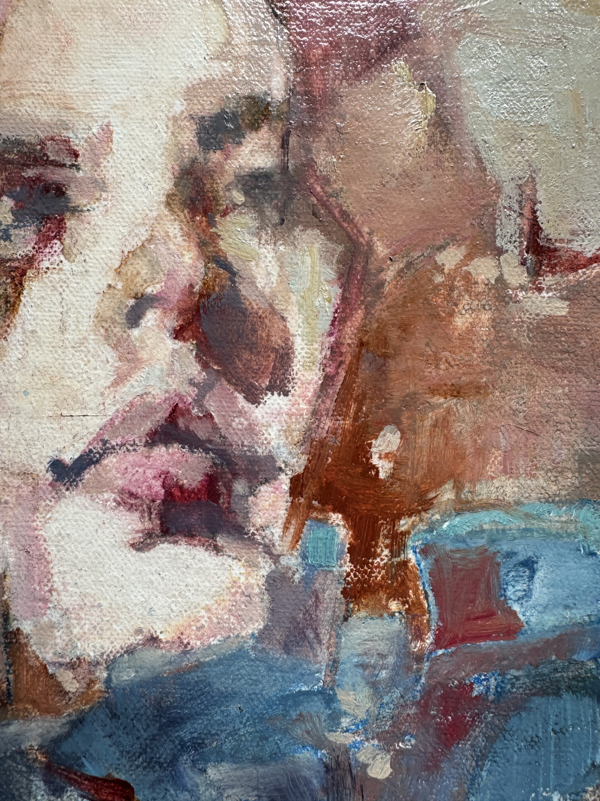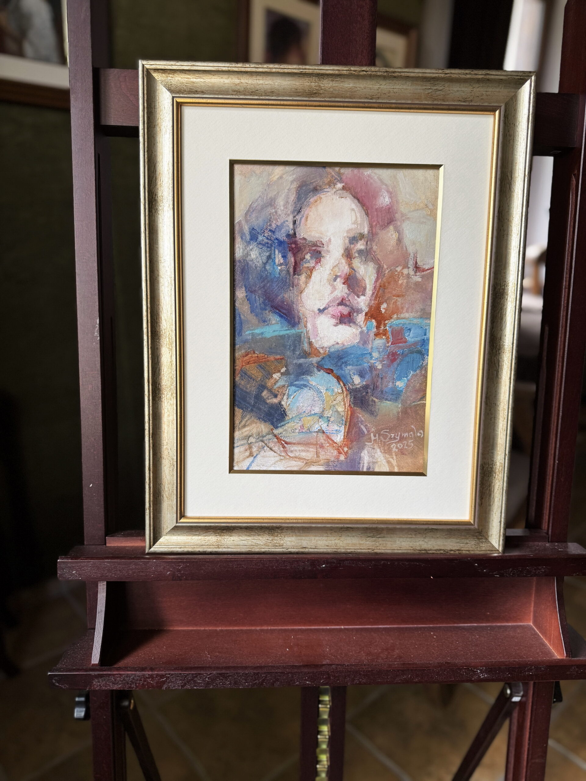 namalowany farbami akrylowymi i olejnymi na tablicy malarskiej, zawerniksowany.