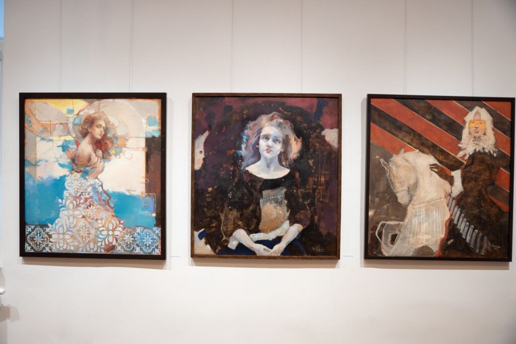 Tematem przewodnim wystawy była- a jakże by inaczej – postać kobieca. Tym razem jednak była to kobieta inna niż w cyklu „ONA” – bardziej dojrzała, refleksyjna, pełna niepewności wobec własnej przyszłości. Trochę upozowana, trochę grająca rolę, a jednocześnie zalękniona i krucha. Tym razem z moich obrazów spoglądały na nas kobiety bardziej prawdziwe, bardziej świadome, bardziej dorosłe.